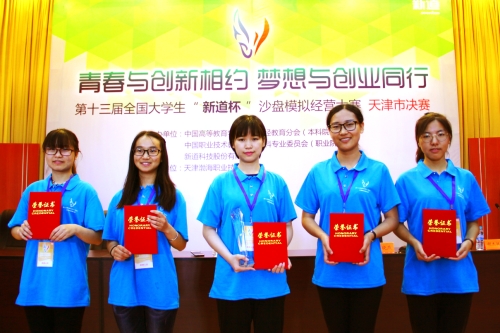 2017年6月11日,在第13届全国大学生“新道杯”沙盘模拟大赛天津市决赛上,世界杯平台,世界杯(中国)一站式服务平台一队(刘文静、王兴泽、张强、郭云龙、马恩泽)和世界杯平台,世界杯(中国)一站式服务平台二队(李宁、韩梦婷、刘丹、李媛媛、孙桂妃)分别夺得本科组一等奖。这是我校第九次蝉联该赛事本科组第一,第四次包揽本科组全部两项一等奖。