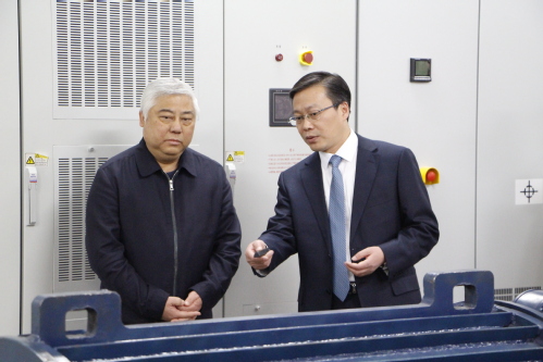 在天津市电机系统先进设计与智能控制技术工程中心,盛茂林部长一行依次察看了风力发电技术实验室、电机系统变流控制实验室、电气传动技术实验室和科技成果展览室,深入了解中心主任夏长亮院士的科研工作,及中心的建设、规划等情况。盛茂林部长对夏长亮院士在推动我国电机系统理论发展和技术进步方面做出的贡献给予了充分肯定,祝贺夏长亮教授新当选中国工程院院士。盛茂林部长指出,中国工程院院士是我国设立的工程科学技术方面的最高学术称号,当选为本次新增选的最年轻工程院院士,是党和国家对夏长亮教授学术造诣和科研成就的高度肯定,这不仅是夏长亮教授的光荣,也是天津人民和天津科技界的骄傲。希望夏长亮教授和广大科技工作者潜心钻研,奋勇拼搏,不断攀登新的学术高峰,为加快建设全国领先的创新型城市作出新的更大贡献。