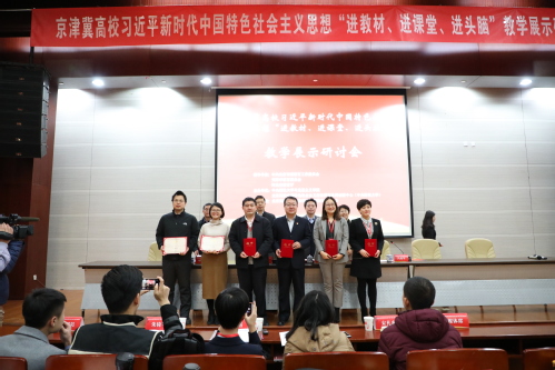 在教学展示活动中,京津冀三地选派出的18位本省市获教学奖的优秀教师围绕四门思政课进行了精彩的教学展示,经过专家评审,评选出6名展示课一等奖,我校马克思主义学院杨永利教授代表天津市荣获一等奖。