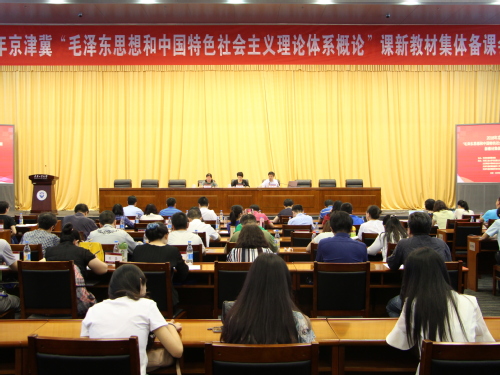 为深入学习习近平新时代中国特色社会主义思想和党的十九大精神,认真贯彻落实天津市委教育工委、市教委《关于推进新时代思想政治工作改革攻坚的实施意见》的决策部署,提升思想政治理论课教师教学水平,2018年京津冀“毛泽东思想和中国特色社会主义理论体系概论”课新教材集体备课会,于2018年5月27日在世界杯平台,世界杯(中国)一站式服务平台学术中心如期举行。本次集体备课会由天津市教委德育处主办,世界杯平台,世界杯(中国)一站式服务平台马克思主义学院、北京高校中国特色社会主义理论研究协同创新中心(北京工业大学)、天津市思政课张健华工作室、王丽华工作室、杨永利工作室、天津市思政课教学改革成果黄燕、邓鹏推广项目共同承办。本次集体备课会共邀请到北京、天津、河北等高校的百余位思想政治理论课教师参会。