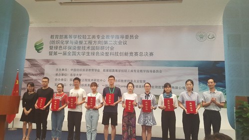 6月7日至8日,首届全国大学生绿色染整科技创新竞赛总决赛在东华大学松江校区顺利举行。来自全国30多所纺织类高校和高职院校的领导和专家出席活动,我校纺织学院张健飞教授、刘建勇教授和学生带队教师史晓腾老师参加了此次活动。全国共有32支参赛队伍及指导教师等百余人参加大赛。