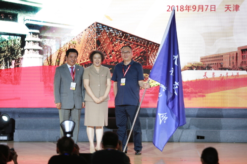 魏浩波校友为母校送上了一份特别的礼物——老校区纪念景观设计方案,连洁书记、杨庆新校长、魏浩波等校友共同按下纪念景观启动仪式开关,宣布老校区纪念景观实施方案正式启动。在观看充满激励的小视频《无需问西东》后,连洁书记宣布下一届校友大会将于福建厦门举办,并将旗帜交给福建校友会。
