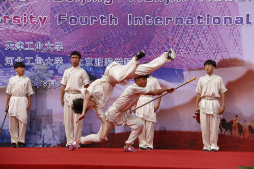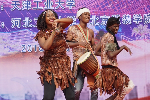 国际文化节上,中外学生以风情图片、民族服饰和传统歌舞的形式向大家呈现了一场丰富的文化盛宴。舞台上,来自尼日利亚、利比里亚、赞比亚、突尼斯、泰国、孟加拉、蒙古、斯里兰卡、哈萨克斯坦、乌兹别克斯坦、俄罗斯、土库曼斯坦等国家的留学生身着本国传统服饰,踏着异域风情音乐,为现场观众送上了精彩的表演。国家级非物质文化遗产“戏法”代表性传承人肖桂森老师表演的中国古典戏法,以及天津霍元甲文武学校的学生表演的中国武术更是将现场气氛推向了高潮。最后是时尚缤纷的世界时装秀,各国留学生身着传统服装精彩亮相,压轴登场的是身穿中国旗袍的外国留学生,她们上演了中西文化融合的最美工大秀。