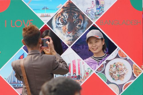 此次国际文化节上还有各国文化风情展览,近30个展位充分展示了中外各国文化、教育、服饰、手工艺品等图片和实物,每个展位还别有心思的设计了和参观者互动的环节,大家可以在异域风情的照相框前留影纪念,还可以拿着文化节特制的护照在各个展位参观、盖章。虽身未动,但心已远,做到足不出校,游遍全世界。此次国际文化节将中国民俗文化“请”进校园,还结合了天津当地特色,9位民俗艺人展示了杨柳青年画、天津特色剪纸、泥塑(捏泥人)、抖空竹、画京剧脸谱、中国结制作、面塑(捏面人)、草编、传统风筝制作等历史悠久且充满吸引力的中国非物质文化,成为最受外国留学生喜爱的展位,也走进了我校中国学生的心中。