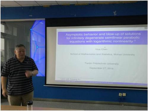 应我校理学院邀请,武汉大学教授陈化于2018年9月27日上午10点,在我校理学院A401作了题为《具有对数非线性的无限退化半线性抛物方程解的渐近性态和爆破性》的学术报告。来自我校理学院数学方向的老师、本科生和研究生参加了本次学术报告。讲座由理学院副院长裴永珍教授主持。