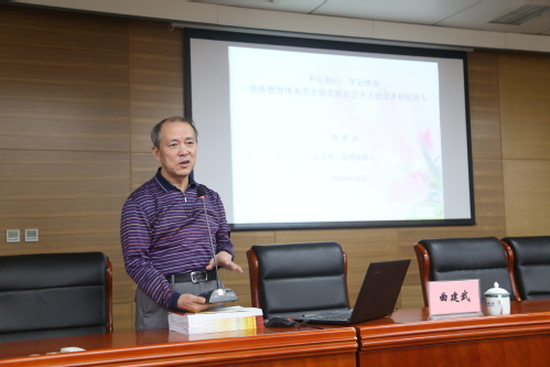 曲教授结合自己三十余年的思想政治工作经历,通过丰富的工作实例,深刻阐释了辅导员工作的重要意义,指明了未来辅导员队伍专业化、职业化发展的方向。报告会上,曲教授强调,辅导员要有坚定的共产主义信仰,要热爱祖国、热爱人民、热爱学生,把思想政治教育作为工作核心,要用真心、爱心去对待每一个学生。曲教授号召并鼓励全体辅导员在工作中要注重培养学生的四点品质:一要爱国,忠于祖国,忠于人民;二要励志,立鸿鹄志,做奋斗者;三要求真,求真学问,练真本领;四要力行,知行合一,做实干家。曲教授以其崇高的治学精神和渊博深厚的学术造诣为在场的辅导员带来了精神上的鼓舞和理论上的指导。
