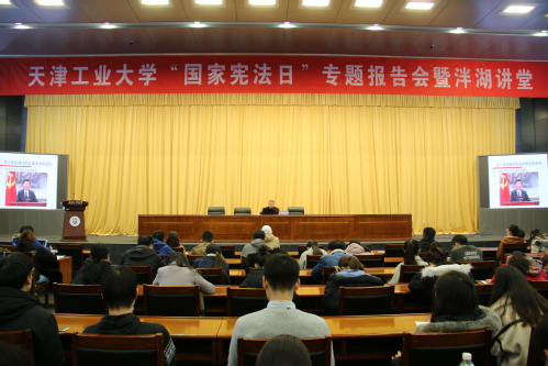 11月27日晚,世界杯平台,世界杯(中国)一站式服务平台“国家宪法日”专题报告会暨泮湖讲堂在学术中心报告厅举行。特邀请天津市习近平新时代中国特色社会主义思想讲师团成员、天津普法宣讲团成员、中共天津市委党校安连成教授作题为“弘扬宪法精神”的专题报告。近300名师生参加了报告会。