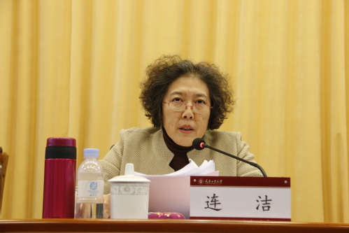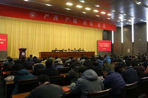 20181219日下午,我校在学术中心召开集中整治形式主义官僚主义工作部署推动会。校党委书记连洁出席并讲话。全体在校校领导、学校党委委员、纪委委员、全体中层干部和各基层党委纪检委员参加了会议。会议由校纪委书记裴军主持。