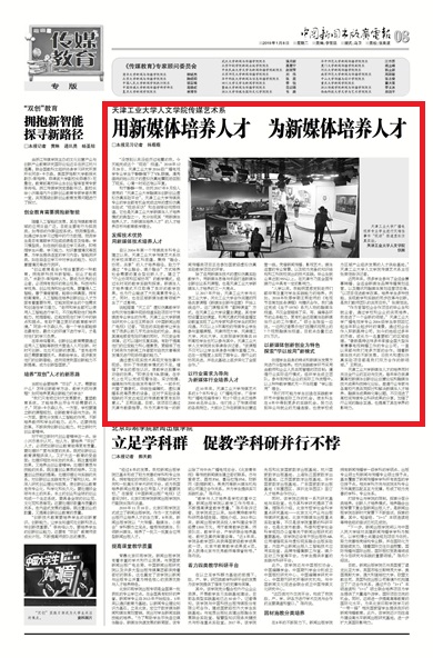 2019年1月8日,《中国新闻出版广电报》8版以《世界杯平台,世界杯(中国)一站式服务平台人文学院传媒艺术系用新媒体培养人才为新媒体培养人才》为题对我校做了报道,现将全文转发如下,以飨读者。
