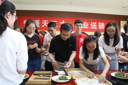 母校的饭菜,是记忆里最有味道的风景。6月13日中午,学校西苑餐厅三楼喜气洋洋、热闹非凡,“情暖天工大 毕业送骄子”主题活动正在如火如荼进行。校长夏长亮,组织部、学工部、后勤管理处主要负责人及各学院党委副书记与2019届毕业生代表共同包饺子,把母校深切的祝福凝结进每一只饺子里。