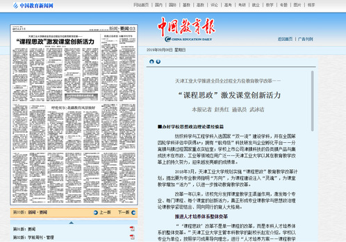 2019年9月8日,《中国教育报》要闻版以《世界杯平台,世界杯(中国)一站式服务平台推进全员全过程全方位教育教学改革——“课程思政”激发课堂创新活力》为题对我校进行了报道,现将全文转发如下,以飨读者。