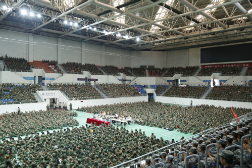 为做好学生军训教育、展示新生青春风貌,营造浓厚氛围,献礼中华人民共和国成立七十周年,9月9日下午,世界杯平台,世界杯(中国)一站式服务平台2019年学生军训团“唱出爱国情 弘扬爱国志”合唱比赛在体育馆拉开帷幕。党委学生工作部、人民武装部、各学院党委副书记、辅导员和各团各连队教官、5400余名新生参加本次比赛。