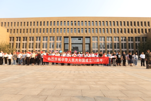 升国旗奏唱国歌活动结束后,现场师生以饱满的热情,跟随旋律齐声高唱《歌唱祖国》。“五星红旗迎风飘扬,胜利歌声多么响亮,歌唱我们亲爱的祖国,从此走向繁荣富强……”悠扬动人的旋律与磅礴嘹亮的歌声响彻活动现场,大家纷纷挥舞起手中的红旗,高举“我爱你中国”“爱我中华”“不忘初心、牢记使命”等标语,深情歌颂了新中国70年来风雨兼程取得的辉煌成就和中华民族自强不息、奋勇前行的豪迈气概。师生们以最热忱、最真挚、最高尚的情感,唱出了对伟大祖国的拳拳热爱之情,为新中国70华诞献礼。