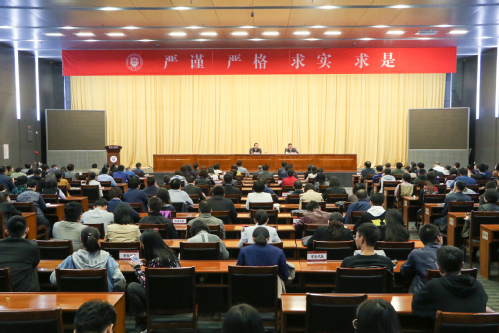 2019年10月24日上午,市委常委、常务副市长马顺清同志在校学术中心为我校党员干部、师生代表讲授题为《坚定理想信念 争做时代先锋》的主题教育专题党课。市政府副秘书长许颖悟同志陪同。在校全体校领导、全体中层干部、教师支部书记“双带头人”代表、教师、学生党员代表280余人现场听课。校党委书记俞绍平主持。