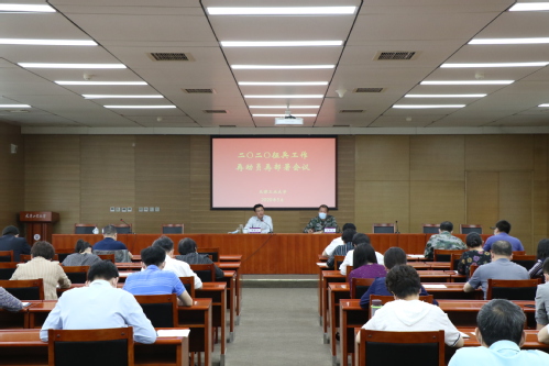2020525日上午9点,我校在会议中心第七会议室召开2020年度征兵工作再动员再部署会议。校党委副书记胡英江,河东区武装部政委王卫东、军事科科长欧宝国出席,学校党委宣传部、学工部、人民武装部、学生就业指导中心相关负责人,各学院党委书记、党委副书记参加会议。会议由胡英江副书记主持。