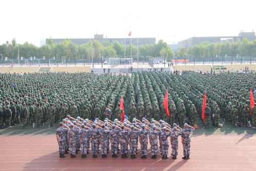 校党委副书记胡英江代表学校向承训部队全体官兵表示感谢,向5000多名天工新同学致以亲切的问候。他指出,学生军训工作是党中央、国务院、中央军委的战略决策,是实现立德树人根本任务和强军目标根本要求的基础工程。同时,他向全体参训同学提出五点希望:一是听从指挥、服从命令,通过军训进一步强化国家意识和国防意识,弘扬爱国主义精神,培育吃苦耐劳和牺牲奉献精神;二是端正思想、艰苦奋斗,充分认识军训活动的重要意义和深刻内涵,用高标准衡量自己,用严要求规范自己;三是学习和发扬部队官兵顽强拼搏、不畏艰难的精神和毅力,善始善终圆满地完成军训任务;四是在军训期间要坚决做到团结一致、友爱互助,将小我融入大我,展现新时代青年的使命与担当;五是真正将军训作为大学生活第一课,快速适应军事训练,自觉主动融入集体环境,努力完成军训任务。