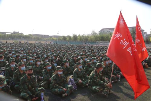 2020年9月21日上午,我校2020级学生军训动员大会在望星体育场举行。校党委副书记胡英江、承训部队领导丁聪同志出席。党委学生工作部部长范甜、人民武装部部长张志勇及各学院主要负责同志、辅导员、全体承训官兵和参训学生参加了动员大会。大会由校人民武装部副部长贾麟主持。