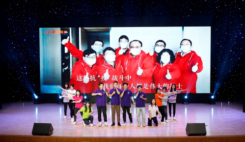 人生能有几回搏,誓把青春许家国。情景诗朗诵《共和国的脊梁》,展示了一批批科研工作者以青春年华投身祖国建设事业,埋头苦干,实现了科学技术各个领域“零”的突破,创造了令全国各族人民自豪的非凡成就。袁隆平、钟南山等国家功勋模范人物事迹的再现,让不少师生落下眼泪。