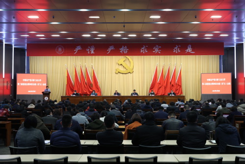 校党委书记俞绍平代表校党委作工作讲话,校党委副书记胡英江传达近期中央及市委会议和领导讲话精神并宣读《会议决议(草案)》,校党委常委、组织部部长刘宏韬通报了校党委领导班子民主生活会情况。