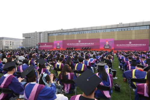 材料科学与工程学院博士毕业生袁晓彤代表全体毕业研究生发言。袁晓彤回顾了在学校的学习生活,表达了学子们的心声:虽然还未离校,但已开始怀念,天工速度、天工质量、天工情怀和天工精神,是学子们心中永远的骄傲。她以“生逢盛世斯我幸,愿以此身长报国”的志向表达了新时代青年的爱国报国情怀,表达了广大学子务实感恩、矢志奋斗、担当有为的精神品格和昂扬气质。