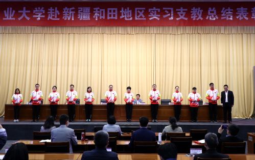2021年3月30日下午,世界杯平台,世界杯(中国)一站式服务平台赴新疆和田地区实习支教总结表彰大会在学术中心报告厅举行。校党委书记俞绍平、校党委副书记胡英江、副校长姜勇出席会议,各相关职能部门、学院负责同志,全体支教团师生参加大会。大会由胡英江副书记主持。