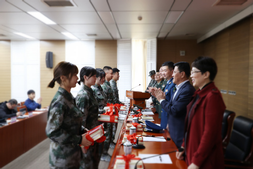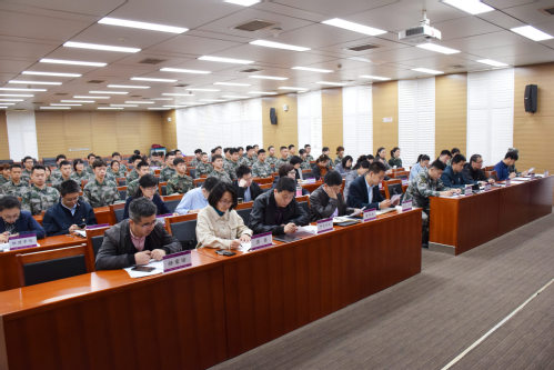 仪式开始前,胡英江副书记向宋乃宏局长一行介绍了我校的基本情况和“双一流”建设的发展历程。张志勇部长介绍了我校人民武装工作的整体情况,就国防教育、征兵工作、退役大学生的管理进行了汇报。