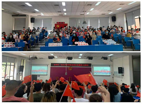 庆祝大会结束后,各基层党委、党总支、直属党支部通过不同形式庆祝中国共产党成立100周年,深入学习习近平总书记在大会上的重要讲话精神。化学工程与技术学院党委组织师生党员集体过政治生日,全体党员面向鲜红的党旗重温入党誓词。化学学院党总支组织党支部书记讲授“七一”专题党课。人文学院党委随即组织师生党员召开专题学习,开展交流研讨。经济与管理学院党委召开庆祝中国共产党成立100周年暨“七一”表彰大会,集体学习习近平总书记在大会上的重要讲话,并为受表彰的“两优一先”代表颁奖。(审稿:党委宣传部 何虹 石晓霞 编辑:党委宣传部 刘旭虹 李焕峰 蒋闯)