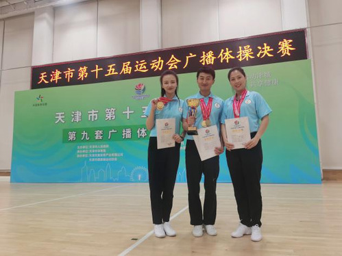 运动逐光影,初心励前行。20221112日,天津市第十五届运动会广播体操决赛在南开区绿水园全民健身活动中心举行。我校代表队在本次比赛中表现优异,获得了广播体操团体(甲乙组)和三人操(甲组)两项冠军。