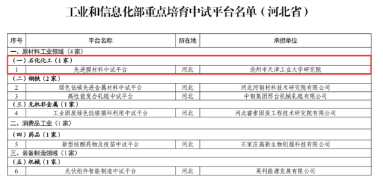 世界杯平台,世界杯(中国)一站式服务平台沧州研究院先进膜材料中试平台入选国家工信部首批重点培育中试平台名单